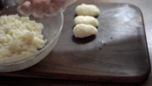 손에 물을 묻혀가며 초밥용 밥을 만들어 주세요.