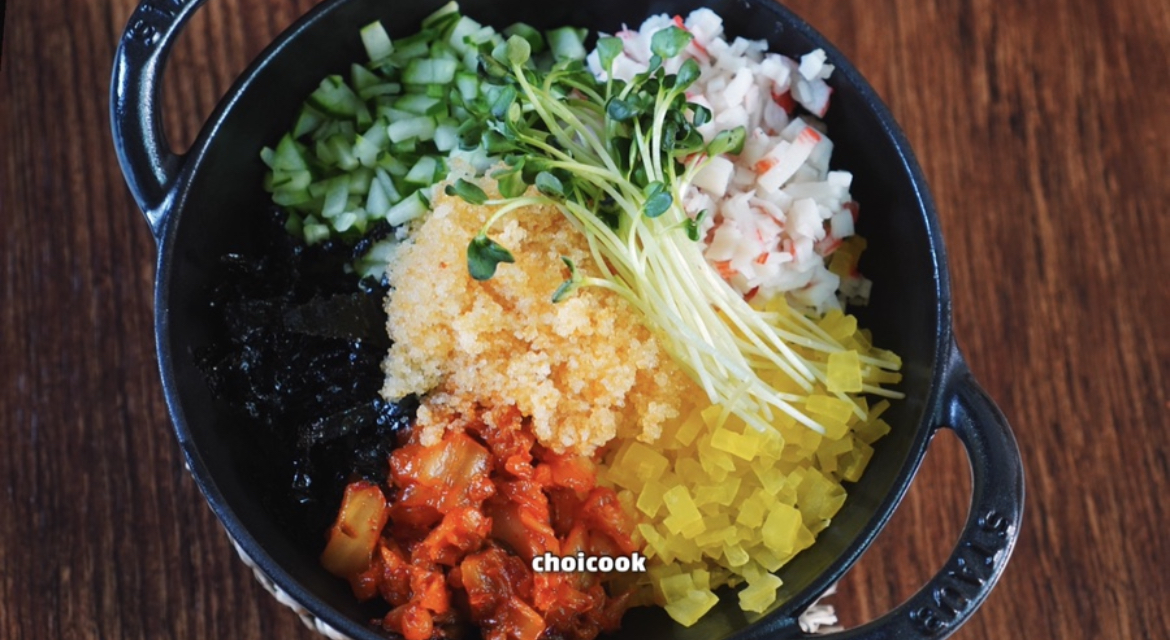 알밥에 들어가는 모든 재료 준비가 끝났습니다.