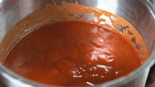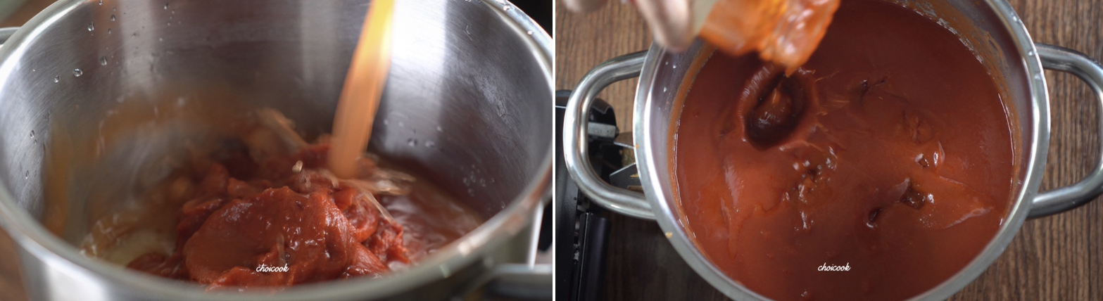 토마토퓨레에 신맛은 설탕이 잡아줘요.
