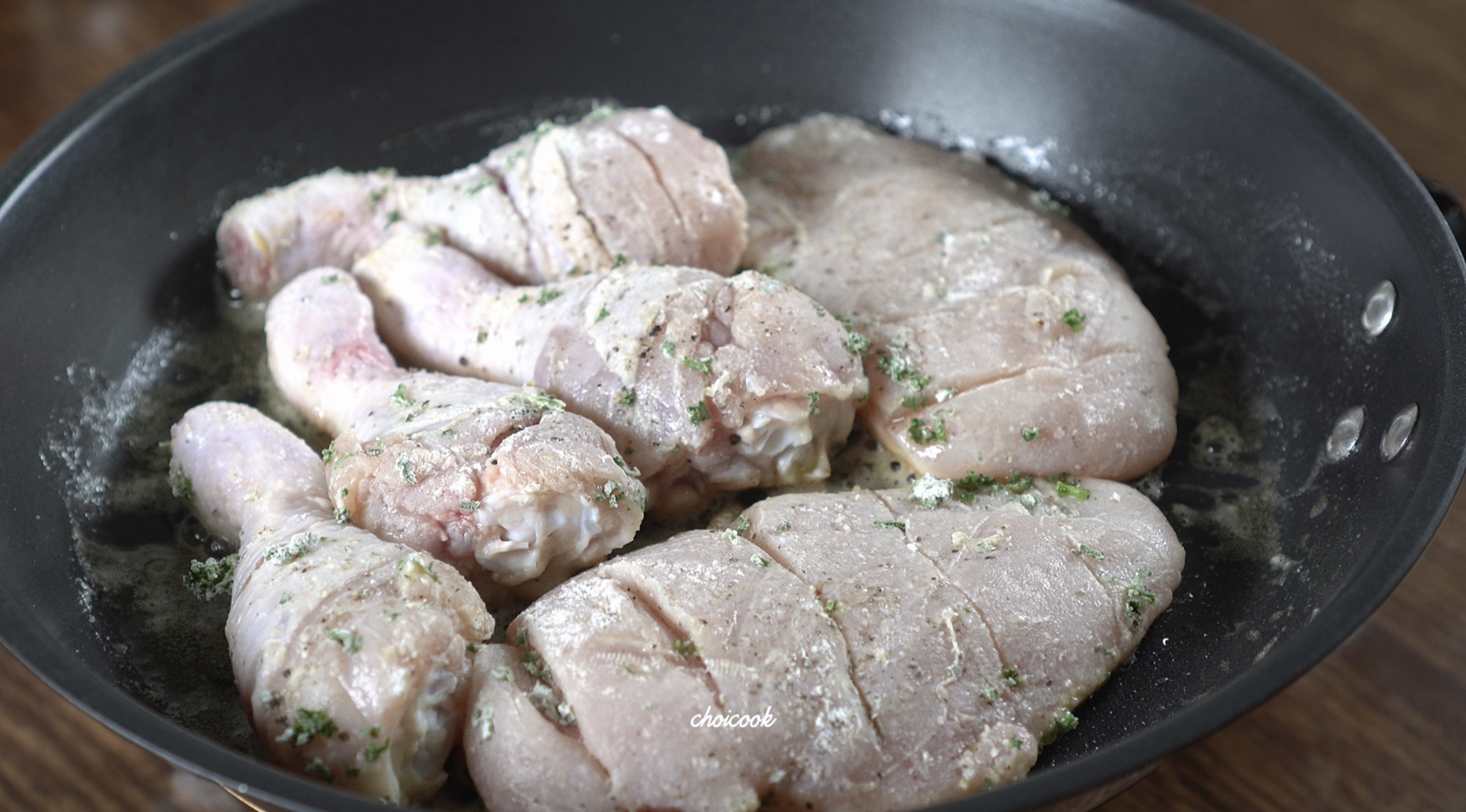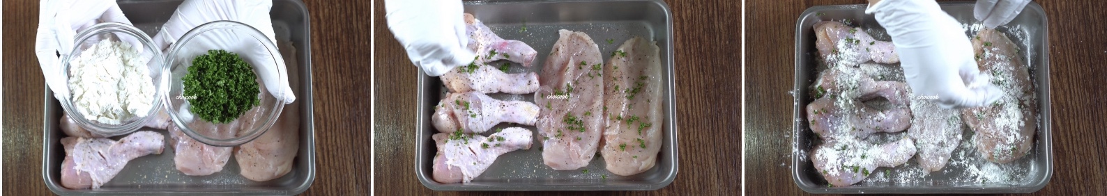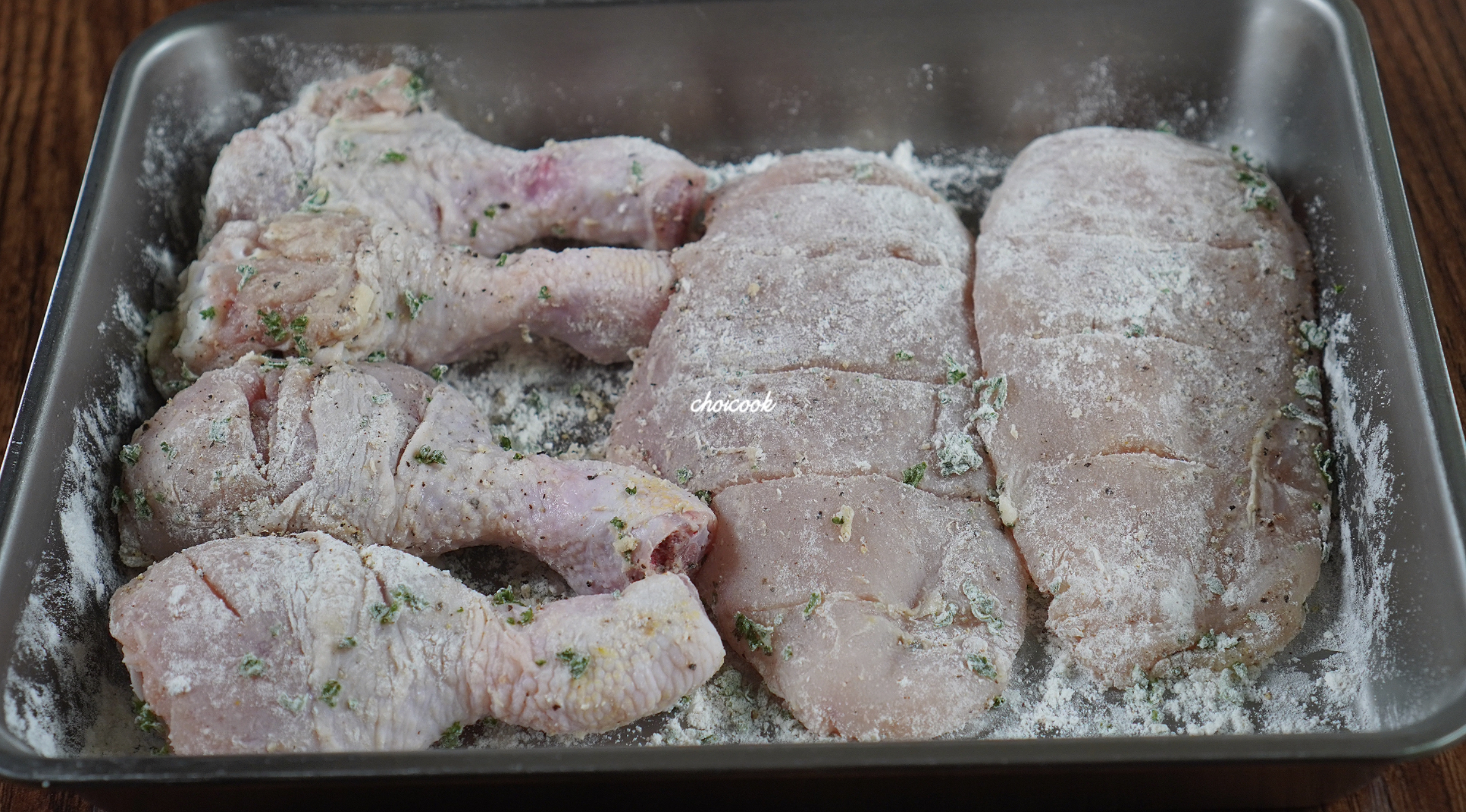 밑간 마무리는 허브와 밀가루!