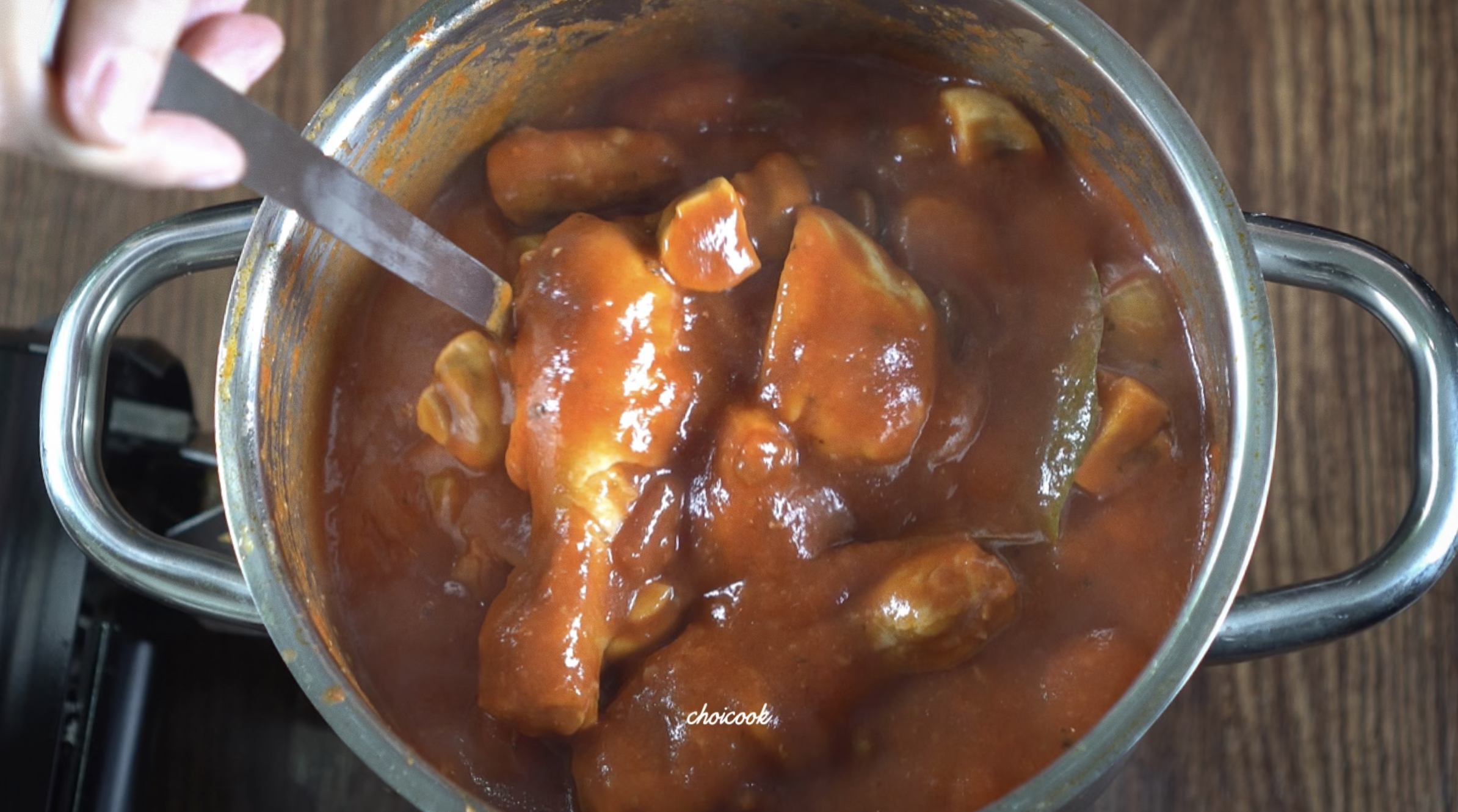 소스가 닭에 스며들도록 뚜껑을 덮고