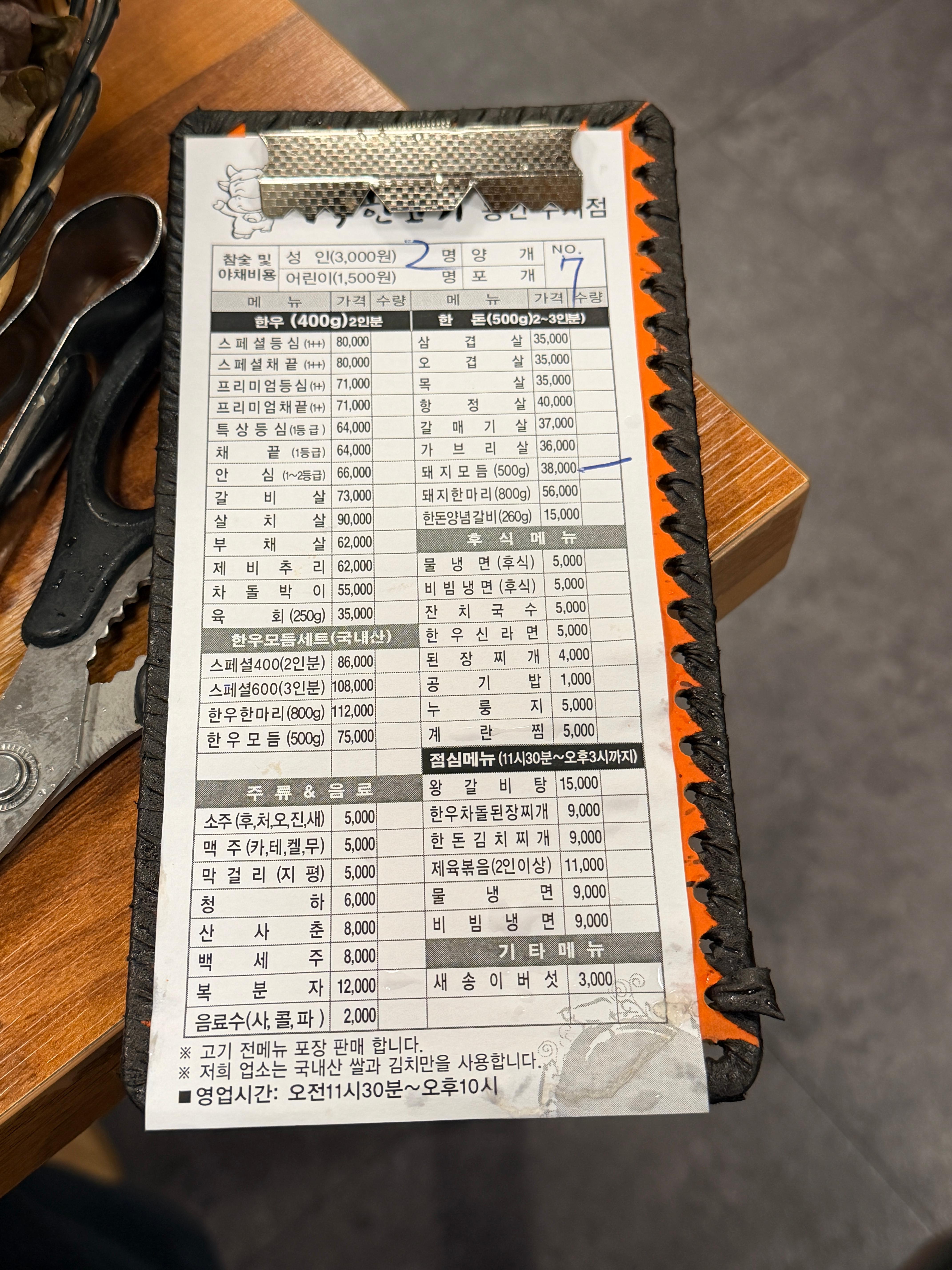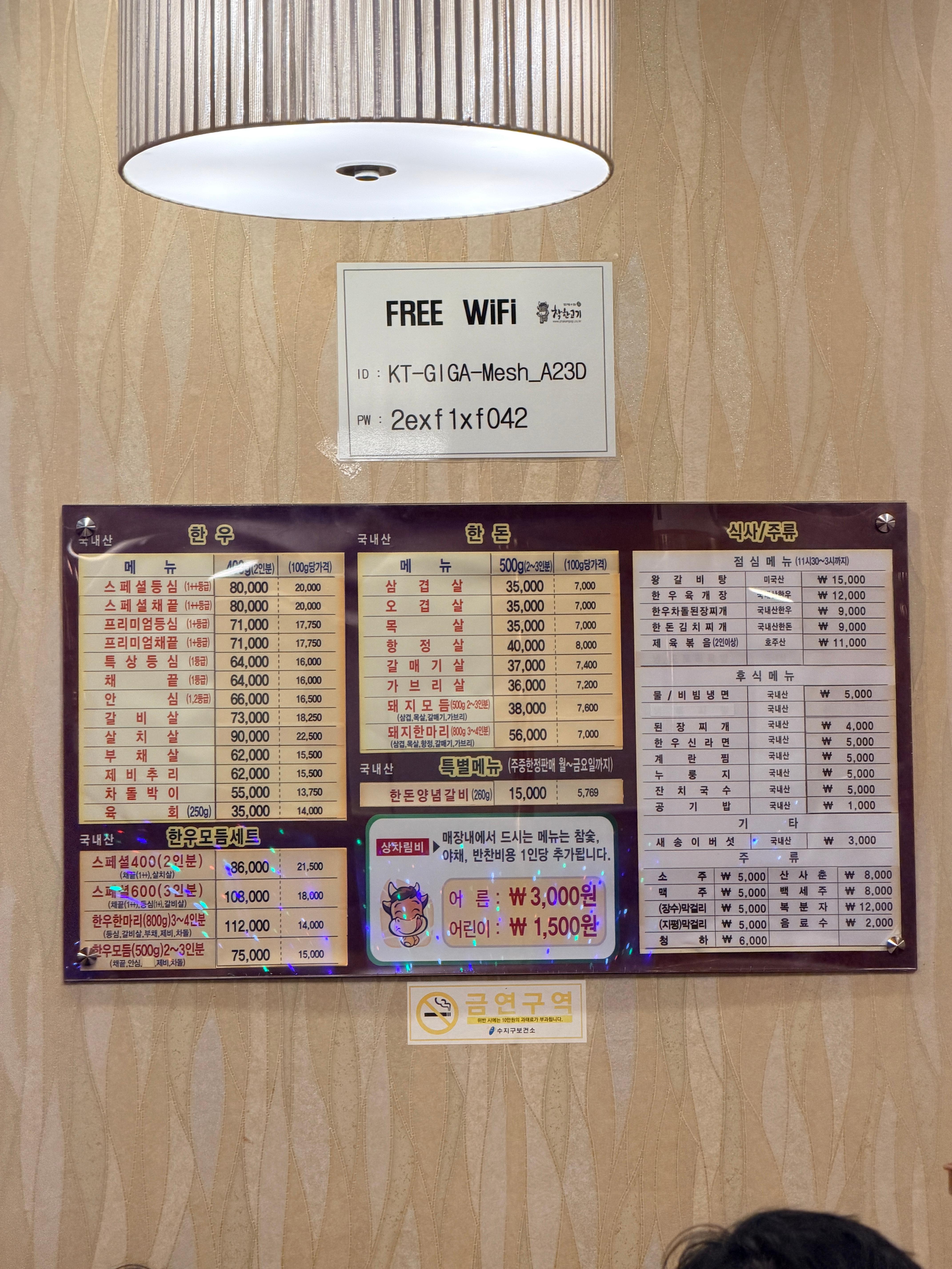 기본 상차림비는 1인 3,000원인데
